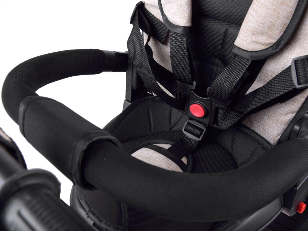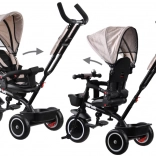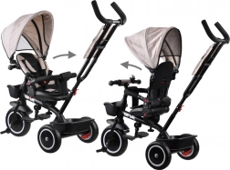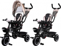 Deze multifunctionele 3-in-1 driewieler combineert een duwmodus voor oudergeleiding, een comfortabele kinderwagenmodus en een zelfstandige driewieler voor de eerste ritten. De draaibare zitting maakt het mogelijk om naar de ouder of in de rijrichting te kijken. De kap met ventilatiegaas beschermt tegen zon, wind en lichte regen en zorgt voor een aangenaam klimaat. 5-punts gordels, een zachte afneembare veiligheidsbeugel en makkelijk te onderhouden, gewatteerde bekleding zorgen voor comfort en veiligheid.