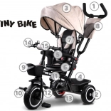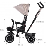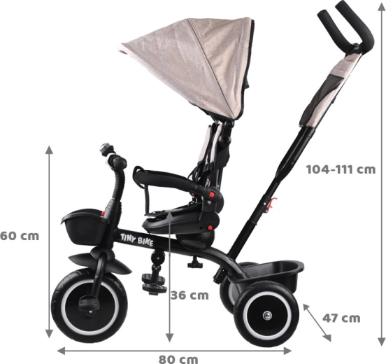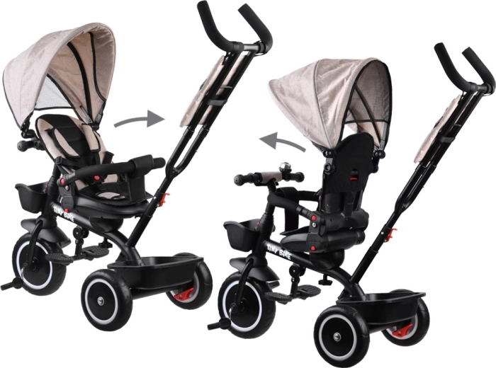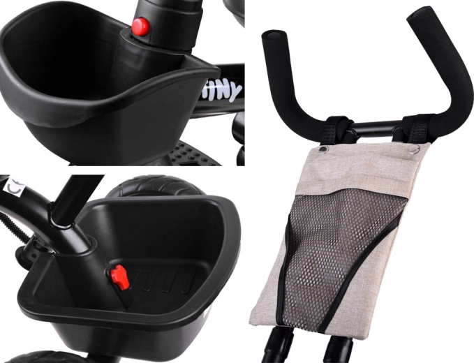 Ouders waarderen de verstelbare duwstang met comfortabele grip, de dubbele parkeerremmen op de achterwielen en de praktische opbergruimte: een voorste mandje, een grote achtermand en een klein tasje voor kleinigheden. Wielen van EVA-schuim hoeven niet te worden opgepompt en bieden een stille en stabiele rit. Inklapbare voetsteunen en pedalen op het voorwiel vergemakkelijken de overgang tussen de modi, zodat de driewieler soepel met het kind meegroeit.