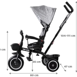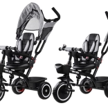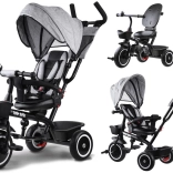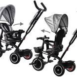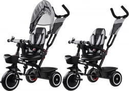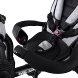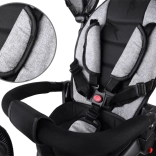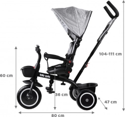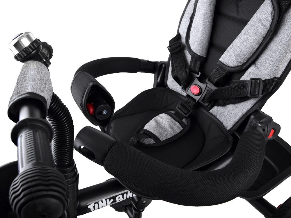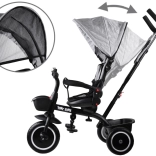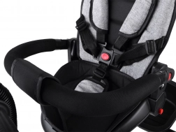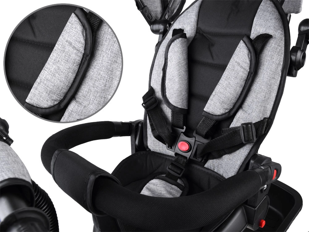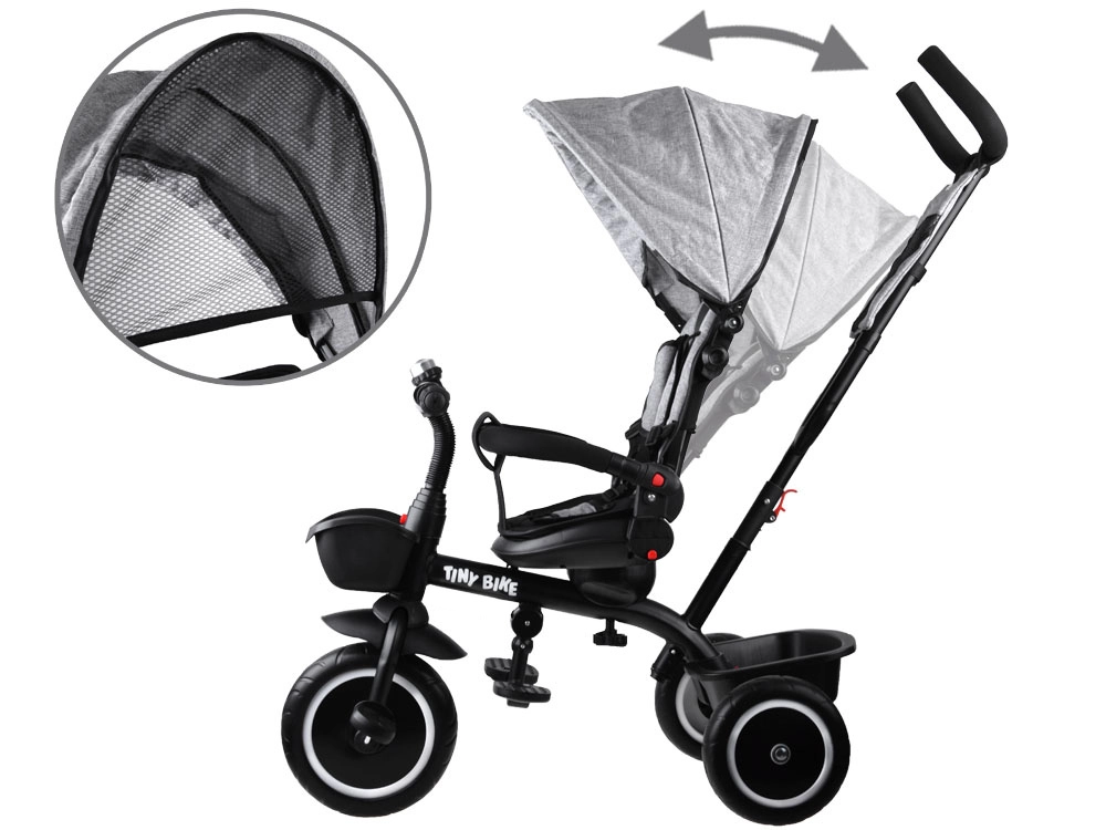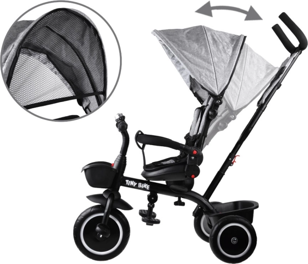 De 3-in-1 driewieler groeit mee met het kind: van oudergeleide modus via de eerste trapmomenten tot zelfstandig rijden. De draaibare en verstelbare zitting met zachte hoes, 5-punts veiligheidsgordels en een gevoerde veiligheidsbeugel bieden maximale veiligheid en comfort. De inklapsbare kap met gaas aan de achterzijde ventileert en beschermt tegen zon, wind en lichte regen.