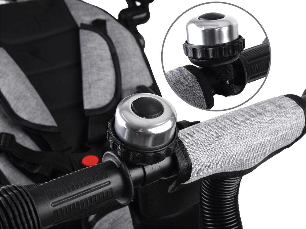 Een metalen bel voor veilige waarschuwingen en comfortabele foam handgrepen op de duwstang maken het ouders gemakkelijker de driewieler te sturen in drukke omgevingen.