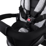 Zachte bekleding, een veiligheidsbeugel en 5-punts gordels zorgen vanaf de eerste ritten voor comfort en zekerheid. De zitting is eenvoudig te draaien tegen of met de rijrichting in en de rugleuning kan worden gekanteld voor rustmomenten.