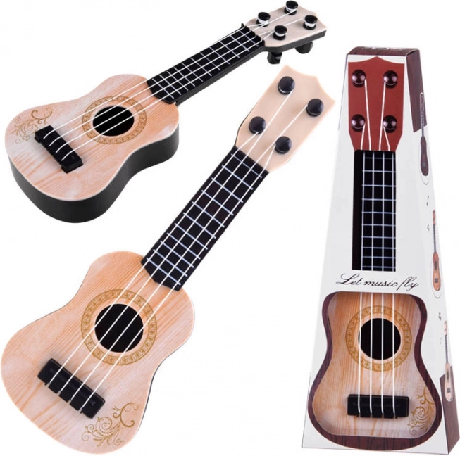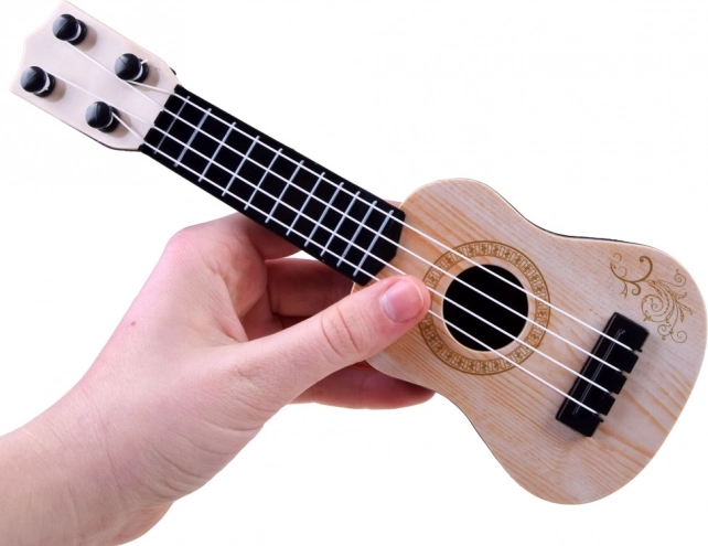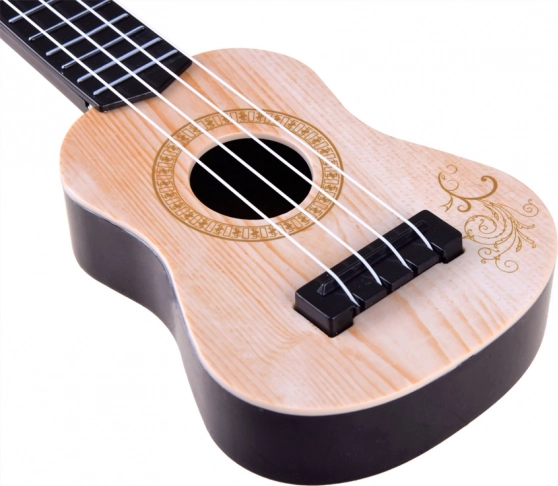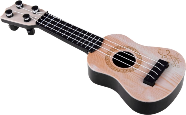 Deze mini-ukulele is ontworpen voor kleine muzikanten die de wereld van muziek willen ontdekken. Dankzij de ultralichte kunststof uitvoering ligt hij ook bij de allerjongsten goed in de hand, terwijl het houtimitatiedecor het speelgoed het uiterlijk van een echt instrument geeft.