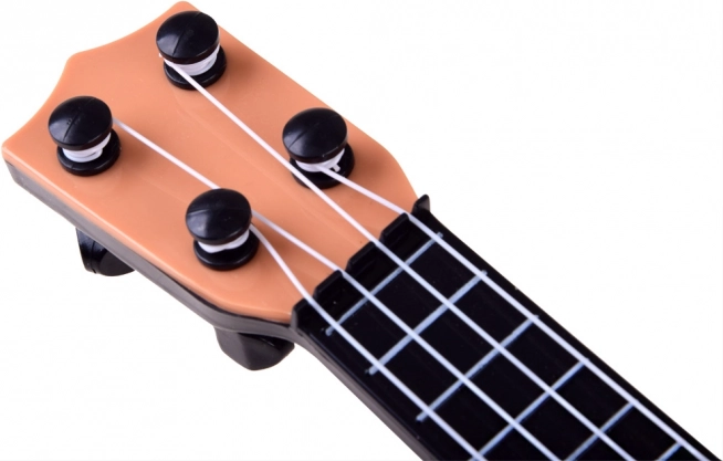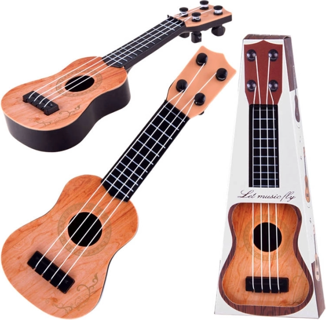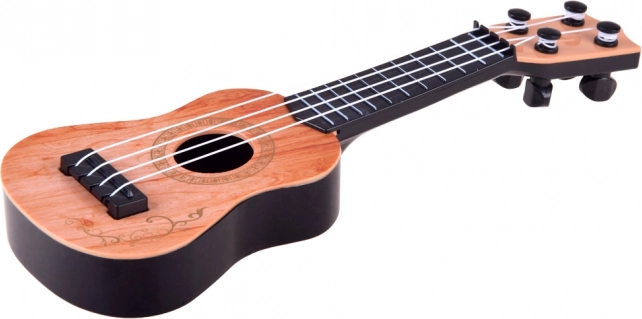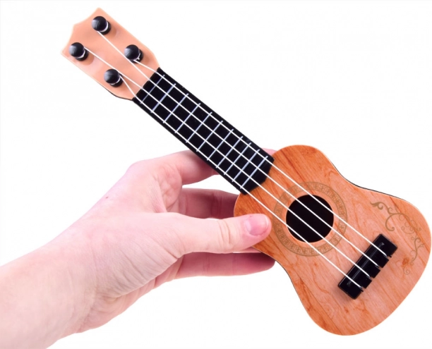 Deze mini-ukulele is ontworpen voor kleine kinderen om op speelse wijze kennis te maken met de wereld van muziek. Dankzij de kunststof body is hij zeer licht, ligt hij goed in de hand en oogt hij als een echt instrument dankzij het houtdecor. De vier nylon snaren zijn fijn af te stemmen, zodat een kind gemakkelijk de eerste tonen kan maken.