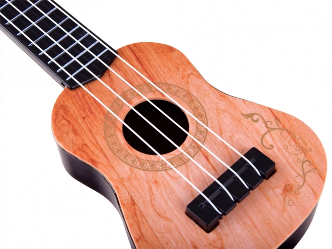 Het design met houtimitatie geeft het speelgoed de uitstraling van een echt ukulele en stimuleert de interesse in muziek.