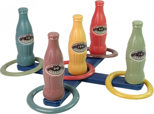 Een leuk ringwerpspel op flessen zorgt voor actieve fun voor kinderen en het hele gezin. Het traint de oog-handcoördinatie, nauwkeurigheid en concentratie. Gekleurde flessen met verschillende puntenwaarden motiveren tot gezonde competitie en ontwikkelen vaardigheden op speelse wijze – ideaal voor in de tuin, het park en op het strand.