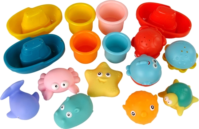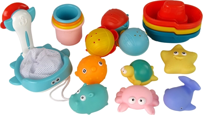 Ontdek de magie van het badderen met een kleurrijke set zeedieren die elk badmoment in een spel verandert. Kinderen kunnen diertjes vangen met het net, de bootjes laten drijven en water spuiten met de rubberen figuurtjes. Prettige pasteltinten en diverse vormen prikkelen de fantasie, terwijl het zachte materiaal vriendelijk is voor kleine handjes.