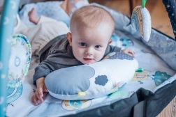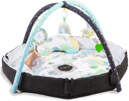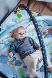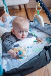 De MoMi Day&Night educatieve mat heeft een groot speeloppervlak: 113x100x53 cm. Aan de bogen zijn de speeltjes gelijkmatig verdeeld binnen handbereik van het kind. De speeltjes zijn veelzijdig en hebben een positief effect op de ontwikkeling van de motoriek van het kind.
