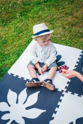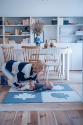 De grote 3D-bladeren die onderdeel zijn van de puzzel zijn een geweldig speeltje voor je kind. Als ze uit de mat zijn gegroeid, kun je hem met dubbelzijdige tape gebruiken als decoratief element.