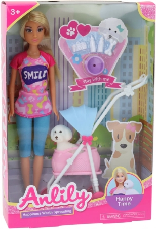 Pop Anlily, met prachtig lang haar en kleurrijke kleding, is de ideale metgezel voor kleine verzorgers. Dankzij haar kunnen kinderen zich inleven in de rol van verantwoordelijke eigenaars die het hondje uitlaten en voor hem zorgen door te voeren en te spelen.