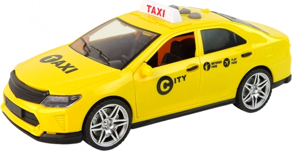 Ontdek een gedetailleerd uitgewerkt model van een stadstaxi dat eruitziet als een echte auto. De gele carrosserie met opdrukken, getinte ramen en zorgvuldig uitgewerkte details stimuleren creatieve spelletjes en realistische stadsscènes. Het speelgoed is ideaal om over de vloer te rijden en buiten op een glad oppervlak.