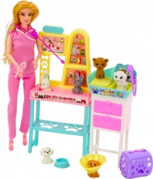 De dierenartsen-poppenset is een uitgebreide speelset die kinderen meeneemt in de fascinerende wereld van dierenzorg. De centrale figuur van de set is een dokters-pop, gekleed in een medische uniform, wat haar een authentieke dierenartslook geeft. Haar beweeglijke ledematen en polsen maken het mogelijk om gemakkelijk verschillende gebaren uit te voeren, zoals een dier vasthouden of medische instrumenten hanteren.