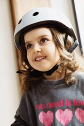Het praktische sluitsysteem met verstelbereik 48–55 cm en verstelbare kinbanden zorgen voor een precieze pasvorm die meegroeit met het kinderhoofd. Voldoet aan de Europese norm EN-71, voor betrouwbare bescherming tijdens fietsen, steppen, op de loopfiets of inline skaten.
