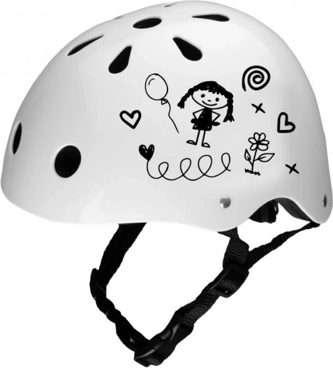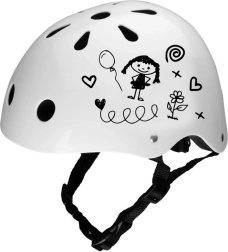 Een geweldige bonus is de mogelijkheid tot eigen versiering – kinderen kunnen de helm versieren met stiften of potloden en zo een uniek design creëren. De tekeningen zijn gemakkelijk af te wassen en te veranderen, zodat de helm meegroeit met de fantasie van het kind.