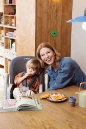 De eetstoel MoMi GOJO heeft ook een extra verkleinkussen voor een kleiner kindje.