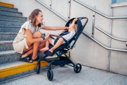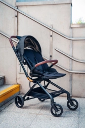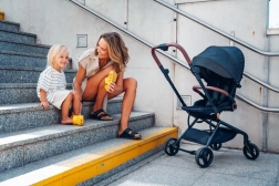 De MoMi Adelle klap je met één beweging in. Ingeklapt is hij zeer compact en dankzij het praktische handvat draag je hem gemakkelijk en berg je hem op in kofferbak of kast.