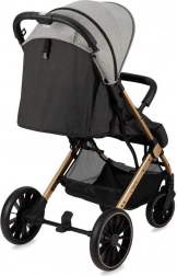 De kinderwagen heeft wendbare, lekbestendige wielen die comfort bieden. Dankzij het grote formaat – 10" – zijn ze ideaal, zelfs in de meest veeleisende omstandigheden. De centrale rem van de MoMi ESTELLE DAKAR is zeer comfortabel in gebruik. Onder de kinderwagen bevindt zich een praktische, grote mand met een draagvermogen tot 2 kg.