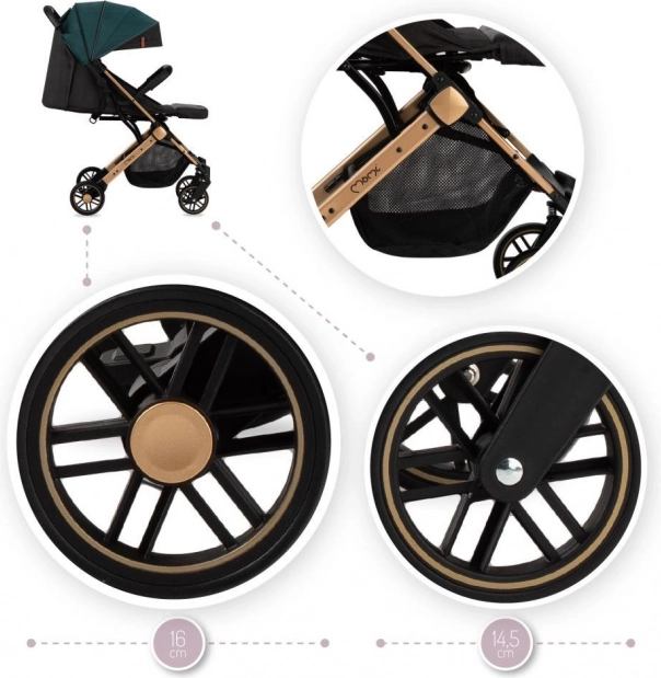 Sportieve buggy MoMi Estelle groen met gouden frame