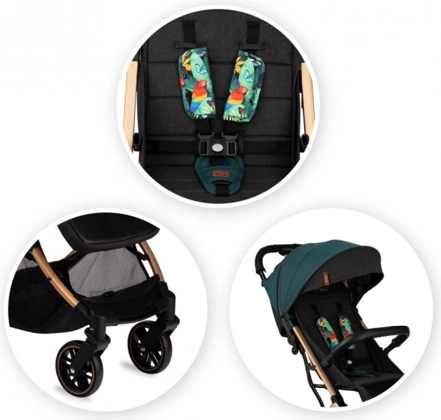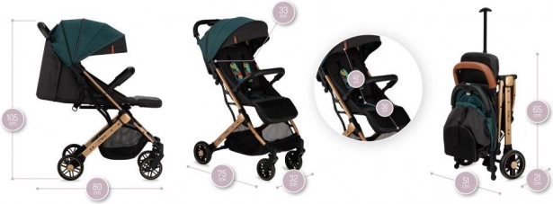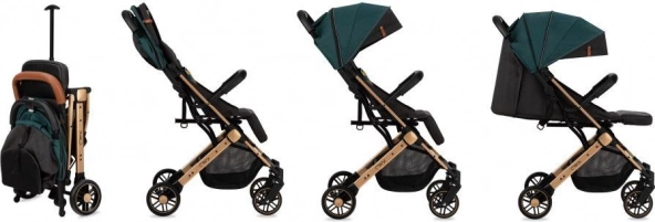 Voor het kind biedt de buggy maximaal comfort: een verstelbare rugleuning, verstelbare beensteun met afwasbaar eco-leer en vijfpuntsgordels houden de kleine passagier veilig op zijn plek. Voor ouders zijn er snel opvouwen, zelfstandig rechtop staan na het opvouwen, een telescoopbeugel om te trekken/duwen als koffer en een ruime boodschappenmand.