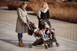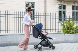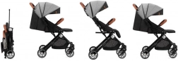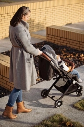 Dankzij de lekbestendige PU-banden en vering op alle 4 wielen is de kinderwagen wendbaar en comfortabel te besturen, ook in stedelijk terrein. De verstelbare rugleuning en verstelbare beensteun zorgen voor comfort tijdens zitten en slapen. De veiligheid wordt verhoogd door de vijfpuntsgordel, centrale voetrem, dubbele vergrendeling tegen onbedoeld inklappen en reflecterende elementen. Bekleding van eco-leer op de beugels met zacht foam is makkelijk schoon te maken en ligt prettig in de hand.