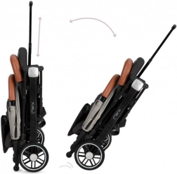 Klap de kinderwagen in een oogwenk in en duw of trek hem dankzij de telescopische hendel eenvoudig als een koffer. De vrijstaande functie bespaart ruimte thuis en in de auto.