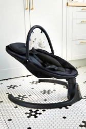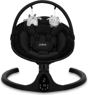 De MoMi Kenani Onyx is een moderne elektrische schommel voor het comfortabel kalmeren en bezighouden van je baby vanaf de geboorte. Het stabiele aluminium-stalen frame, de zachte pluche bekleding en het hoofdkussentje zorgen voor comfort, terwijl de 5-puntsgordel en antislipvoetjes de veiligheid waarborgen. Dankzij Bluetooth speel je eenvoudig favoriete liedjes vanaf je telefoon af; het overzichtelijke LCD‑display en de afstandsbediening maken dagelijks gebruik nog makkelijker.