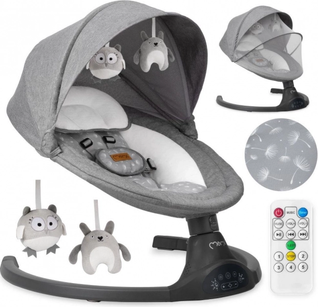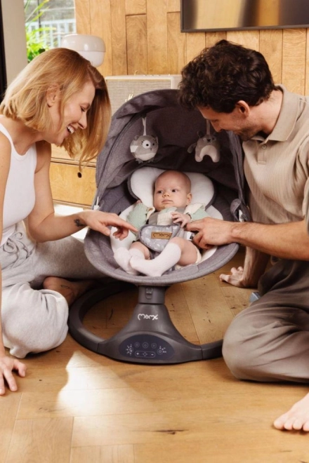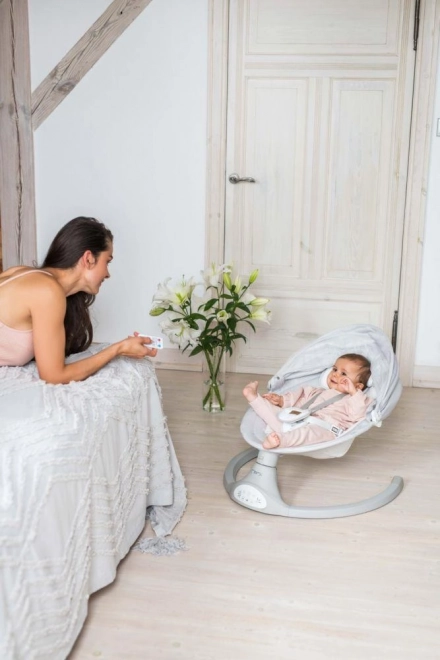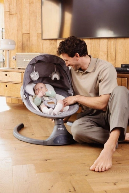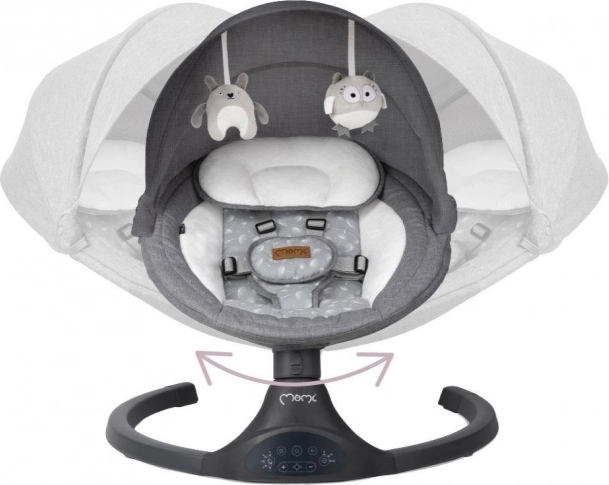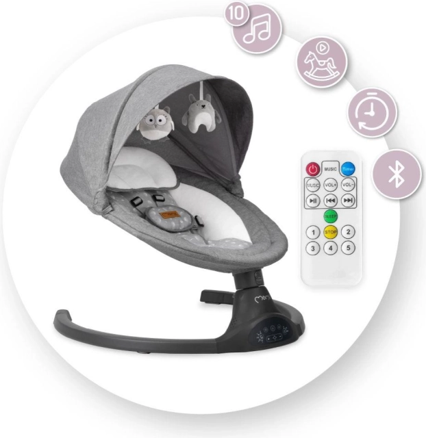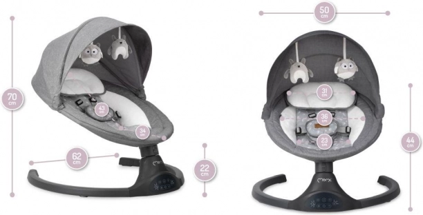 De elektrische wipstoel MoMi KENANI biedt veilig en rustgevend schommelen dat de natuurlijke bewegingen in de baarmoeder nabootst. Dankzij de lichte maar stabiele constructie verplaats je hem makkelijk door het huis of naar het terras. Zachte, fluwelen bekleding, een ergonomische zitting en een hoofdkussentje zorgen voor comfort, zelfs voor de allerkleinsten.