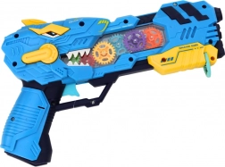 Een leuk kinderpistool in de vorm van een dinosaurus projecteert dinosaurussen en biedt lichteffecten en realistische geluiden. Bij het overhalen van de trekker draaien verlichte wieltjes, het pistool “komt tot leven” en er verschijnt een dinosaurusprojectie op de muur. Geweldig speelgoed voor de ontwikkeling van creativiteit en fijne motoriek. Verkrijgbaar in twee kleuren – blauw en rood.