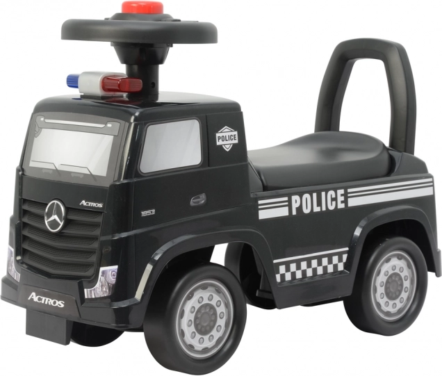 De politie-loopauto MERCEDES Actros is ideaal voor kinderen die zichzelf al met de voetjes kunnen voortbewegen. Dankzij de stevige kunststof constructie is hij licht, stabiel en veilig, en tegelijk voldoende duurzaam voor dagelijks spelen in huis, in de tuin en op de speelplaats.