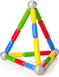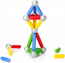 Staafjes en metalen bollen klikken met één beweging aan elkaar. Kinderen maken moeiteloos 2D- en 3D-vormen, van torens tot bruggen.