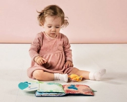 Zachte pagina's en geluidseffecten in combinatie met visuele elementen stimuleren multisensorische betrokkenheid, wat aanmoedigt tot ontdekken en leren.
