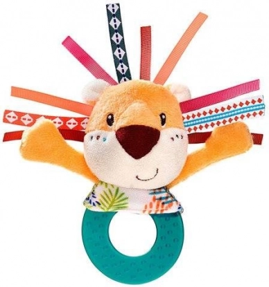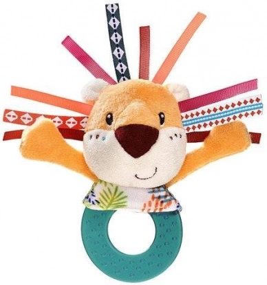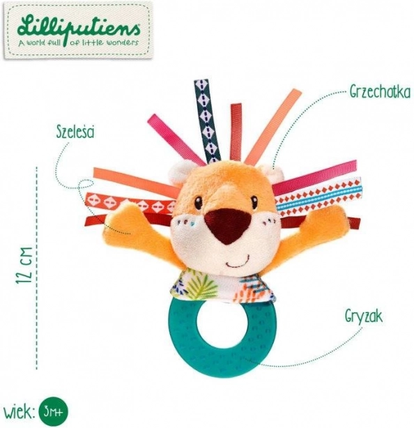 De rammelaar is gemaakt van zacht pluche en aangevuld met vrolijk gekleurde linten die de manen vormen, waardoor de visuele en tactiele zintuigen worden gestimuleerd.
