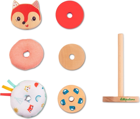 Met de stapelpiramide Vos Alice beleven kinderen creatief spel dat hun motorische vaardigheden stimuleert. De set bestaat uit verschillende onderdelen, waaronder 4 houten en 2 textiele delen, en een houten voet. Elk spel met deze piramide is anders dankzij de mogelijkheid om de onderdelen op diverse manieren te combineren.