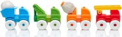 Bouw de brandweerauto, vrachtwagen, betonmixer en wiellader – of wissel de onderdelen onderling. De variatie in onderdelen stimuleert de fantasie en thematisch spel.