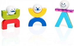 Kleurige vormen en balletjes met gezichtjes stimuleren de fijne motoriek, oog-handcoördinatie en het ruimtelijk inzicht. Ideaal speelgoed voor de eerste bouwervaringen.