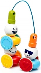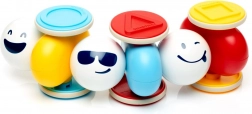 Metalen bolletjes met opdruk van gezichtjes en diverse vormen autootjes nodigen uit tot het maken van wankele, speelse constructies die coördinatie en geduld ontwikkelen.
