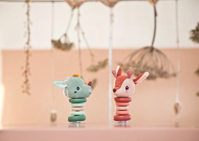 Hert Stella is een ongelooflijk leuk speelgoed dat bij de kleinste aanraking gaat schommelen. Haar stoffen hoofd en gecertificeerde houten ringen garanderen veiligheid en kwaliteit. Geschikt voor kinderen vanaf 6 maanden, waardoor het de perfecte metgezel is voor de kleintjes.