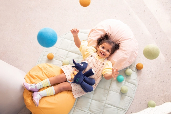 Het speeltje is gemaakt van hoogwaardige polyester en katoen, heeft prettige texturen voor tactiele stimulatie en is perfect om te knuffelen, thuis en onderweg. Reinigen is eenvoudig – oppervlakte reinigen met een vochtige doek.