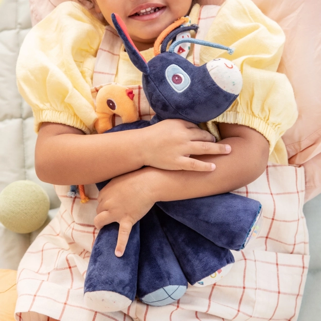 Maak kennis met een pluche vriend die zowel vermaakt als kalmeert. Ezeltje IGNÁC is superzacht, kleurrijk en speelt bij het indrukken van verschillende lichaamsdelen vijf geluiden af, waaronder authentiek gebalk. Stimuleert gehoor, fijne motoriek en nieuwsgierigheid.