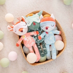 Zachte textielmaterialen, geborduurde details zonder harde onderdelen en hoogwaardige afwerking zorgen voor veilig knuffelen, ook voor de allerkleinsten.