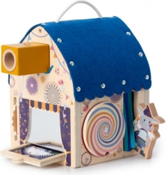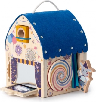 Het huisje is zorgvuldig gemaakt van FSC-gecertificeerd beukenmultiplex en textiele details die het spel een gevarieerde tastbeleving geven. Het oppervlak is gemakkelijk te reinigen, dus klaar voor dagelijks speelplezier. Ideaal als educatief speelgoed voor de ontwikkeling van zicht, oog-handcoördinatie en concentratie.