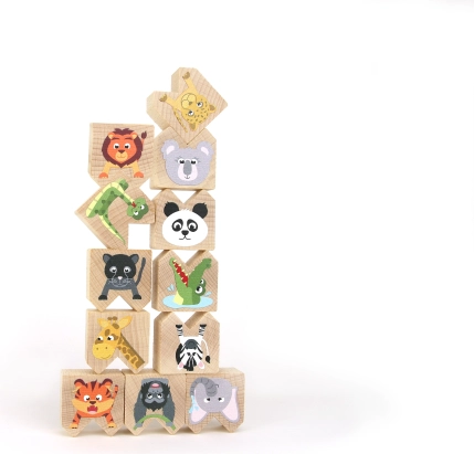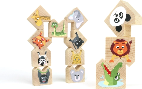 Een kinderspel dat plezier en educatie combineert. Exotische dieren die acrobaten zijn geworden, kunnen in verschillende posities worden gestapeld en zo de motoriek van kinderen ontwikkelen. Het spel is geschikt voor 1 tot 2 spelers en ideaal voor kinderen vanaf 2 jaar.