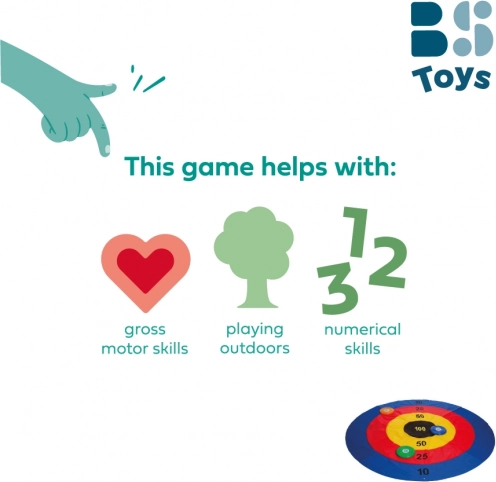 Het spel bevordert motorische vaardigheden, oog-handcoördinatie en basisrekenen bij het optellen van punten. Ideaal voor kleuterscholen, naschoolse opvang, kampen en voor thuis in de tuin.