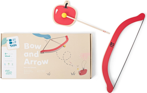 Deze houten set brengt kinderen plezier met precies schieten en fair play. Plaats gewoon een pijl in de boog, span de pees en probeer een van de drie rode appels van de tafel te schieten. Een geweldige keuze voor actief spel en het trainen van concentratie.