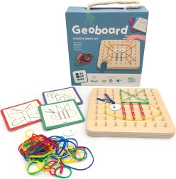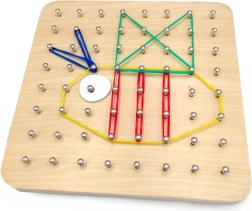 Spel met de Geoboard verbetert handmatige vaardigheden en precisie van bewegingen. Het bevordert oog-handcoördinatie en leert kinderen de basisprincipes van geometrie op een natuurlijke manier.