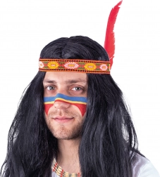 Deze stijlvolle herenpruik is ideaal voor iedereen die wil opvallen op een thema-evenement. Het is uitgerust met een stijlvolle hoofdband met een veer, wat een authentieke Indiaanse uitstraling geeft. Geschikt voor leeftijden vanaf 15 jaar.