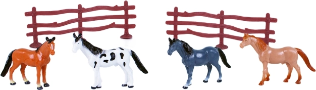 Ontdek de betovering van de paardenwereld met deze leuke set voor kinderen. Vier verschillend gevormde paardjes en twee delen omheining stimuleren creatief spel, het maken van eigen boerderijsituaties en bevorderen de band met de natuur en dieren. Dankzij de compacte afmetingen is de set ideaal voor thuis en onderweg.