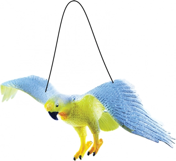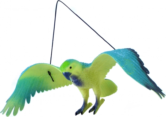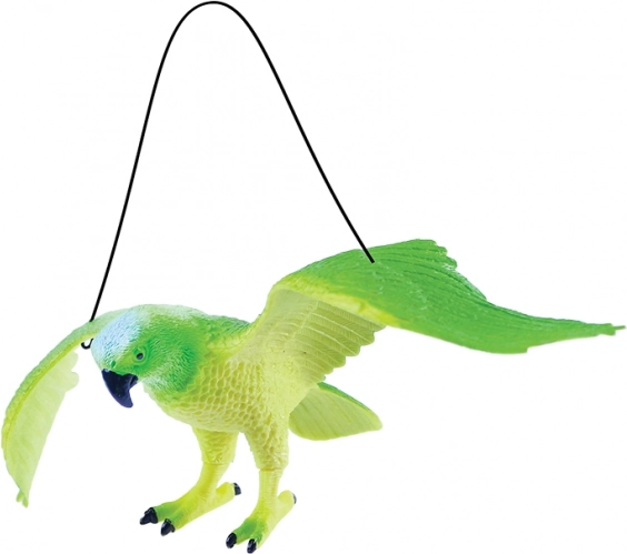 Breng leven in de ruimte met hangpapegaaien in realistische vlucht. Dankzij de lichte constructie en het elastische koord hang je ze gemakkelijk overal op – boven het bed, bij het raam of in de speelhoek. Bij indrukken fluit de papegaai, wat het speelplezier en de interactiviteit vergroot.