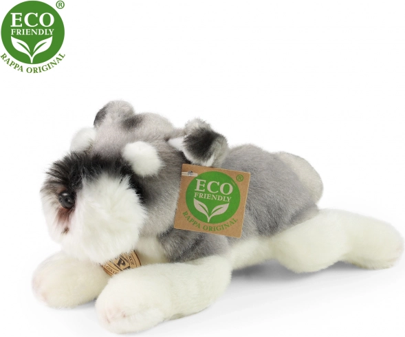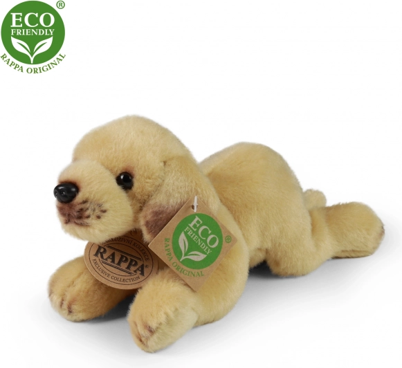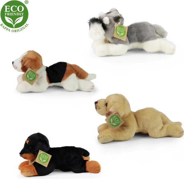 Verrijk je collectie pluchen speelgoed met deze liggende pluchen hond, die niet alleen schattig is, maar ook vriendelijk voor onze planeet. Dankzij gerecyclede PET-flessen gebruikt als vulling, voldoet deze hond aan alle moderne ecologische standaarden. Kies uit verschillende rassen naar uw smaak.