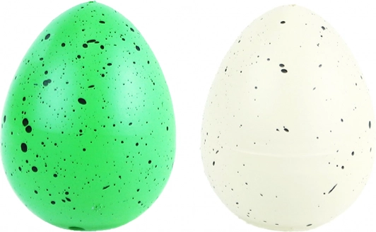 Elk ei heeft een unieke groene kleur met zwarte vlekken en verbergt een kleurrijke dinosaurus.