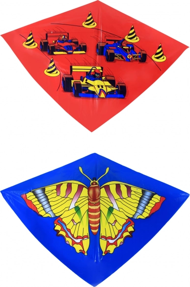Deze kleurrijke plastic vlieger is de perfecte metgezel voor iedereen die graag tijd buiten doorbrengt. De levendige kleuren en de raceauto-motieven trekken ook de aandacht van voorbijgangers. Met een vlieger van 110 x 71 cm is vliegen eenvoudig en leuk.